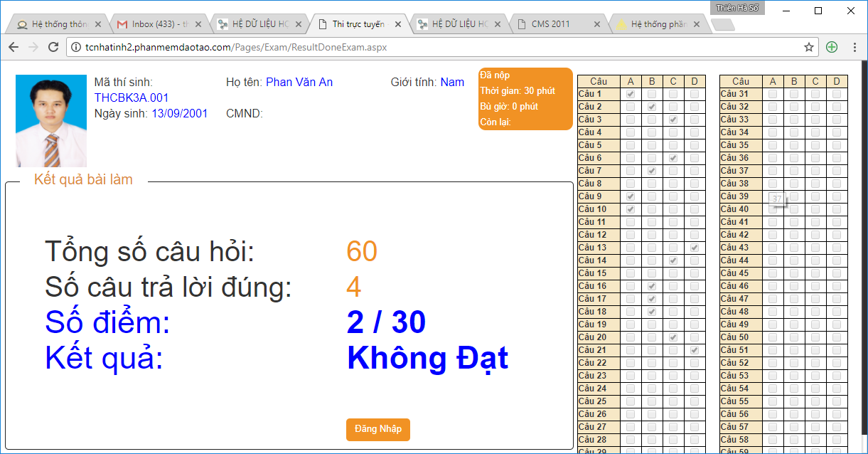 Một số màn hình thi trắc nghiệm trực tuyến: