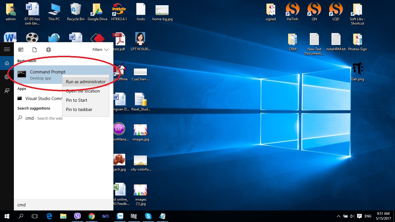 Mở Start-> Windows PowerShell-> Phải chuột vào Windows Powershell chọn Run as administrator